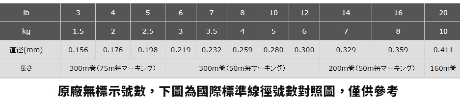 ※ 14LB以上,長度非300m,依原廠規格表為準